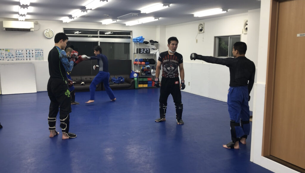 キックボクシングクラス、グラップリングクラス、柔術ビギナークラス、水曜片岡練。