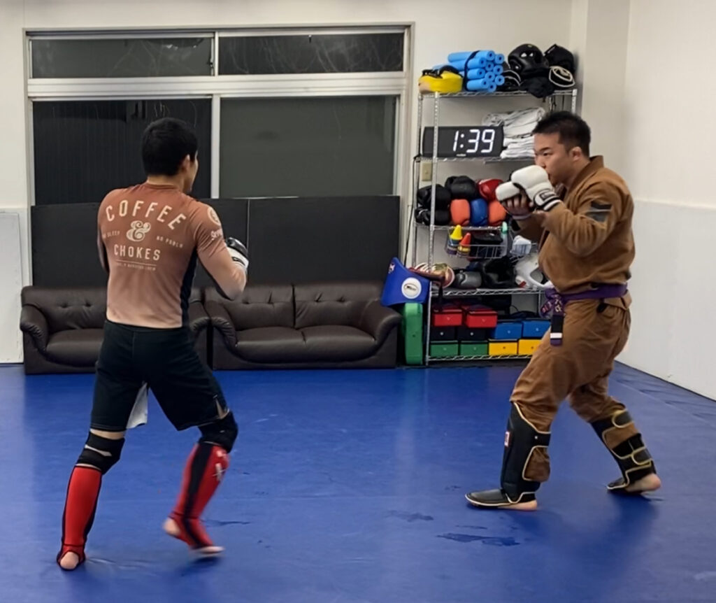 スパーリング後は動画を西川コーチに送信して添削していただきました。