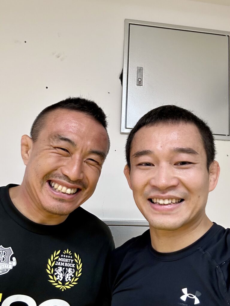 前日にはグラバカ東村山ジムの柔術クラスに参加してくれて、MMAの指導もしてくれた西川コーチ。