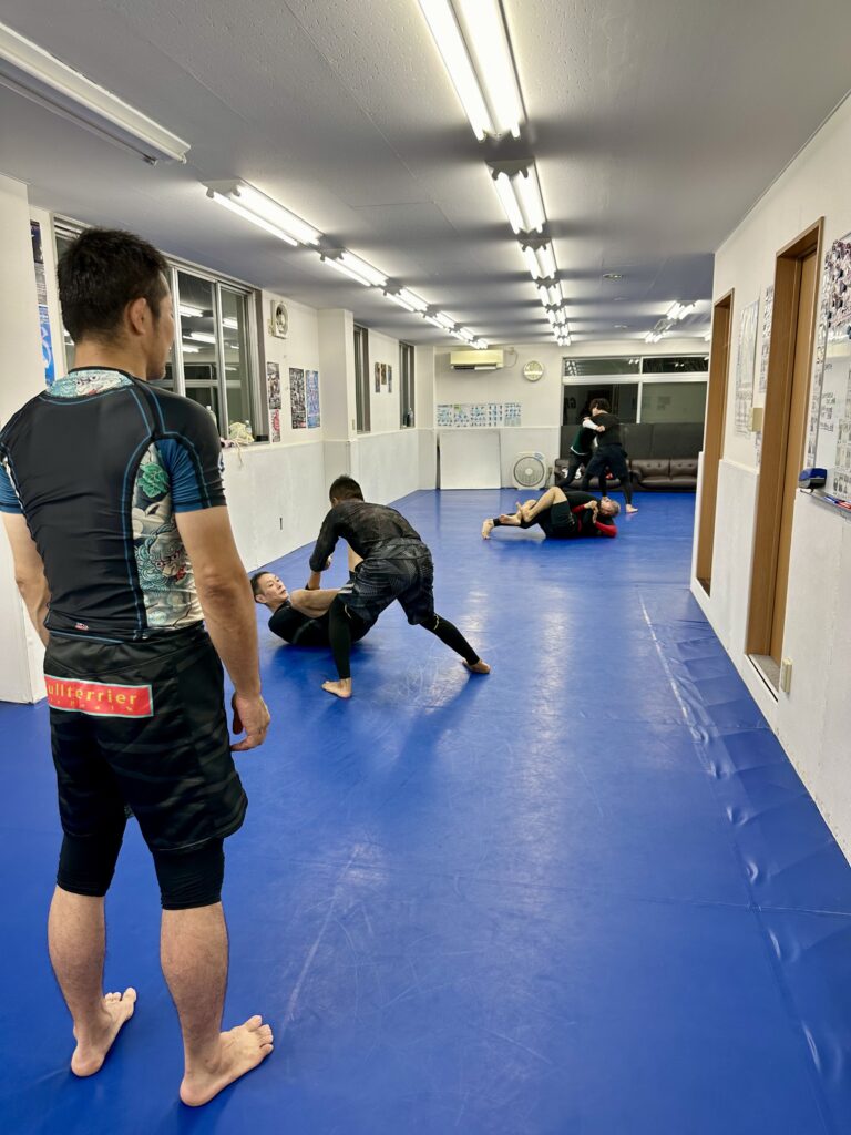 グラバカ中野ジムの後は、グラバカ東村山ジムに移動してプライベートレッスン、キックボクシングクラス、グラップリングクラス、柔術ビギナークラス、グラップリングスパーとMMAスパーリングを1時間。