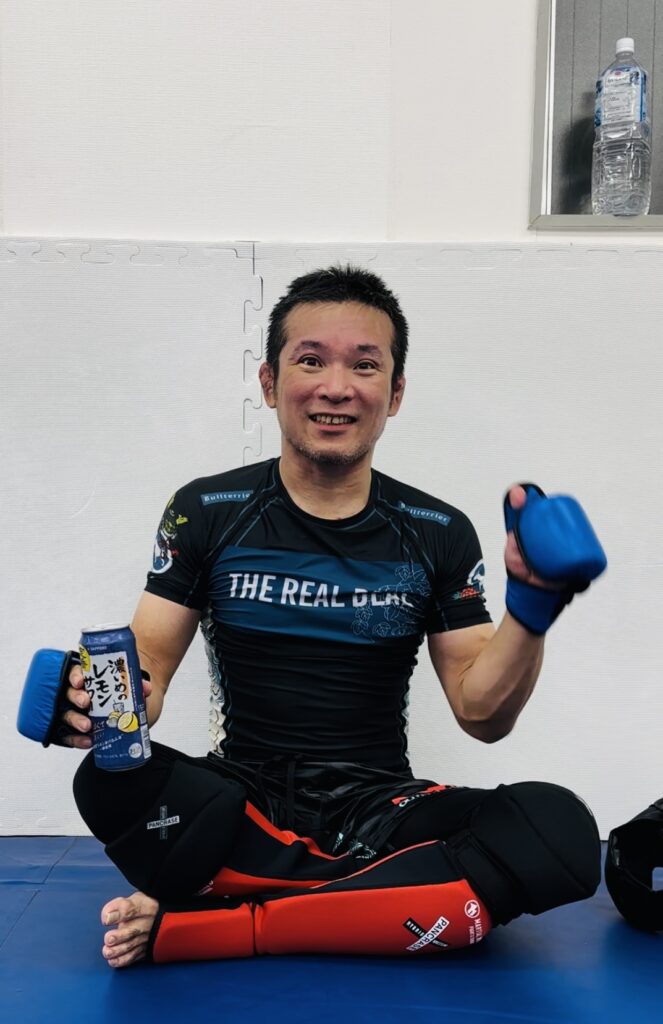 片岡さん。喜んでくれたからまた買ってくるけどMMAスパー後に酒飲むとパンチドランカーになりますよ。