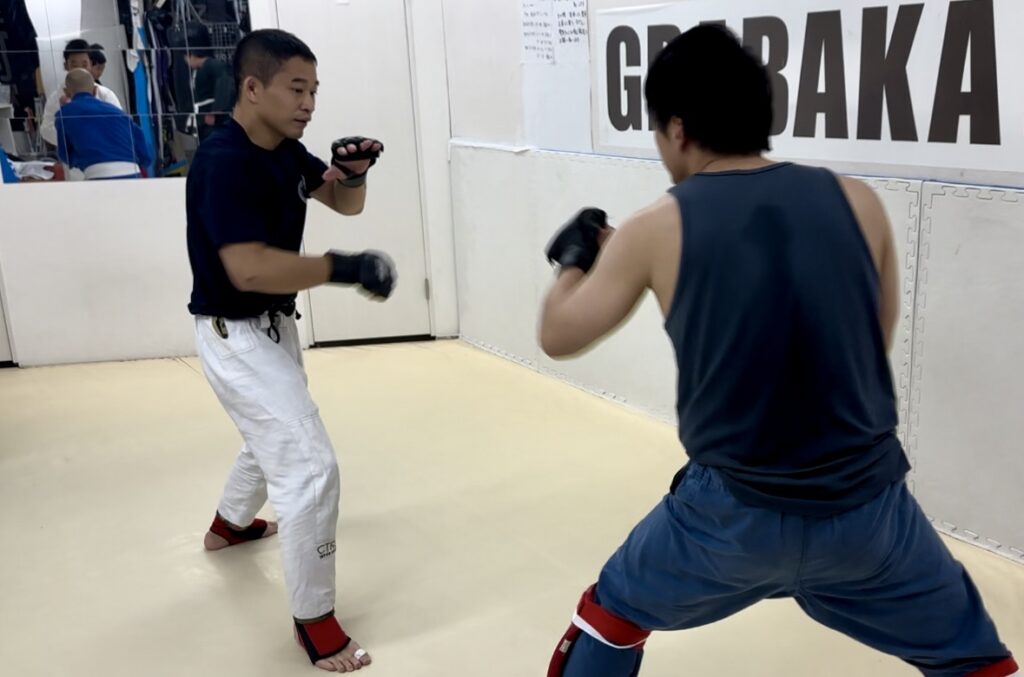 木曜日の19時からは林源平選手のキックボクシングクラス…のはずなんですが、何故か3週連続でMMAの練習をしていました。