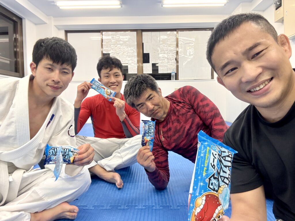 23時過ぎ。柔術スパーリングからトレーニングまで完遂したメンバーでガリガリ君。