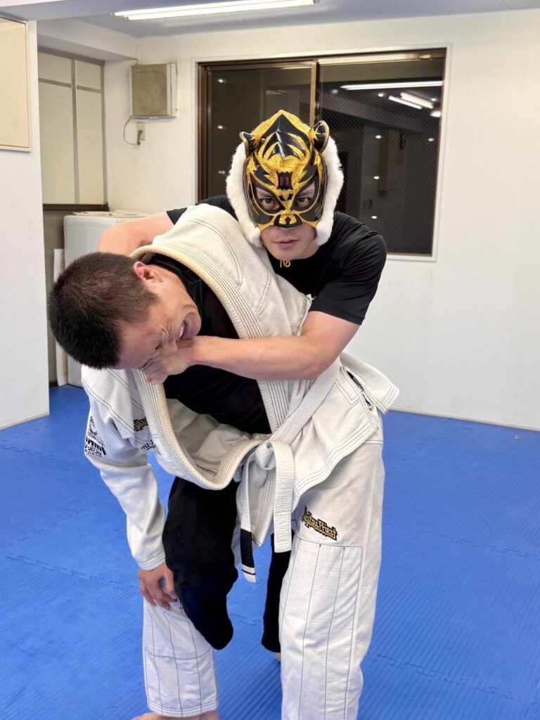 タイガーさん、谷沢君を倒し、次は我々か?と思ったのですが、よくよく話を聞くと、柔術を習いに来たそうです。タイガーさんの柔術体験談は日記があるみたいですよ。
