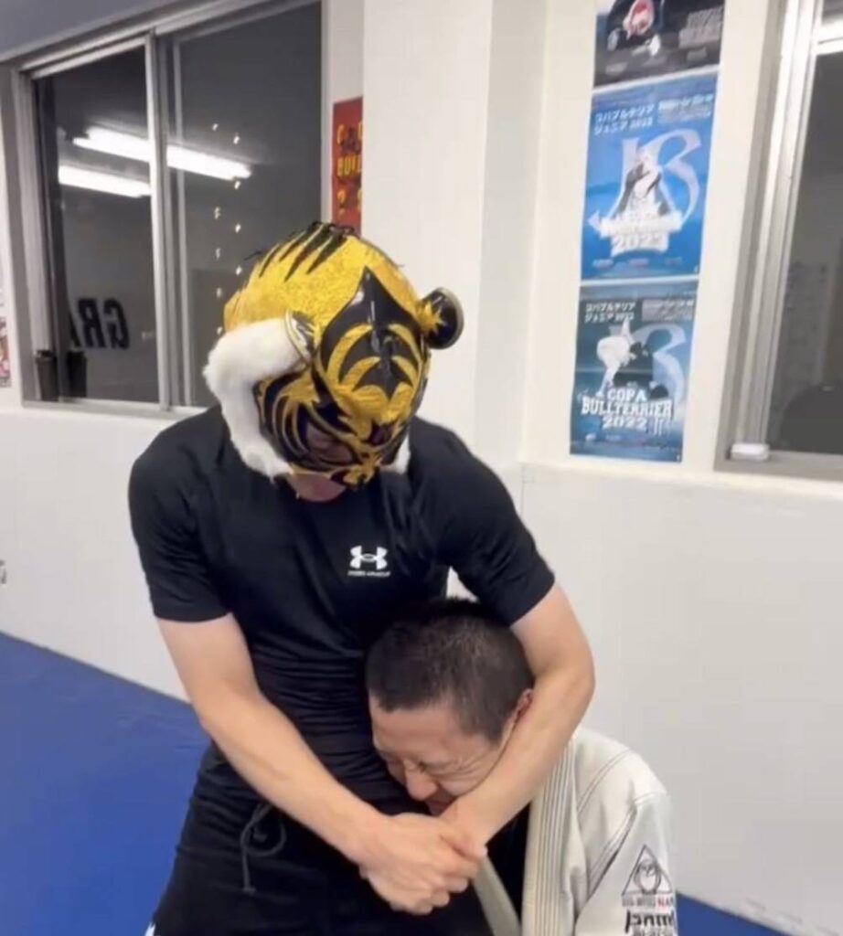 柔術ではみたことない技で、谷沢君を極めてました。「てめぇ、俺を極めて嬉しくてお母さんに電話かぁ?舐めるなよ」とやはりタイガーさん、谷沢君と顔見知りみたいなセリフをいっていました。
