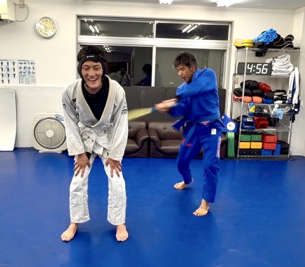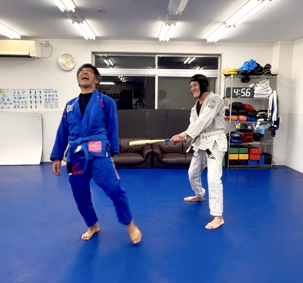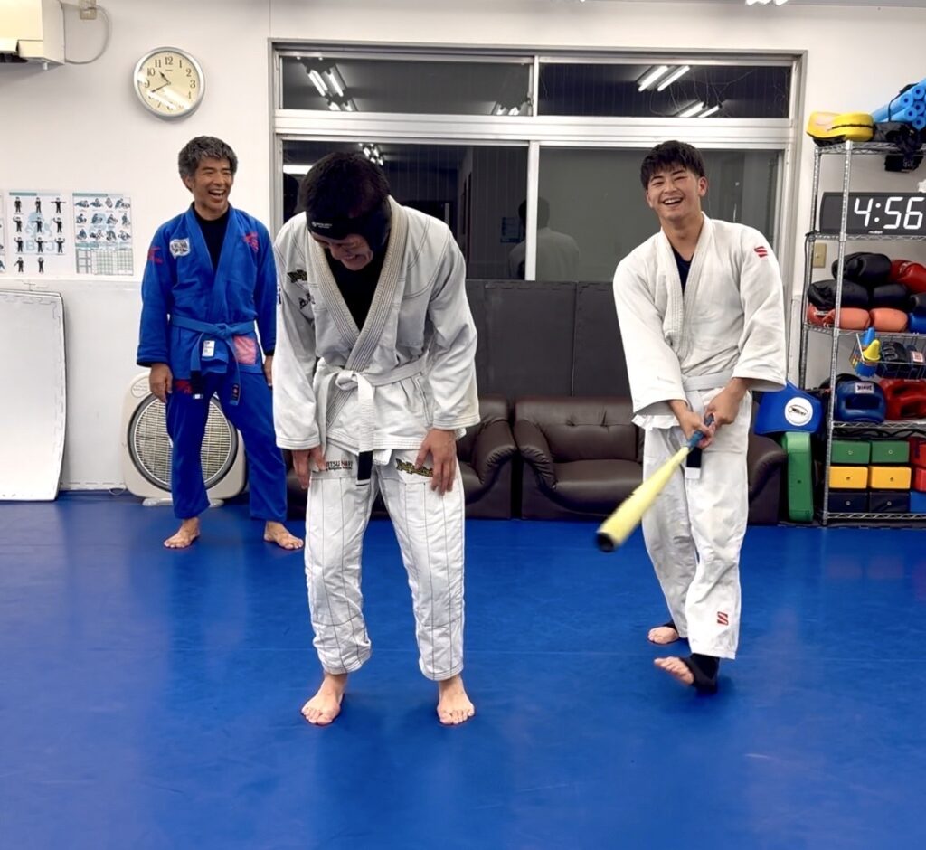 クラスでは噛みつきパスの展開を教わりました。試合に生かしたい有効なテクニックです。例により居残りスパーリングが始まると何だか不穏な空気を感じます。対決後に刺激が欲しいとの提案でYouTuberでもやらないリアル金属ケツバットを敗者にお見舞いすることに(特殊訓練を積んでいる者に限る)初戦は私からタニーへ愛あるひと振り。