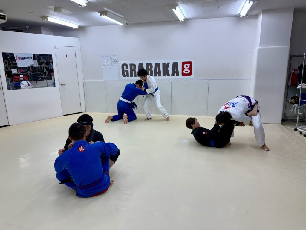 クラス後は、横山先生、鶴見さん、生田面さん、齋藤さん、私の5人で柔術スパーリングを。