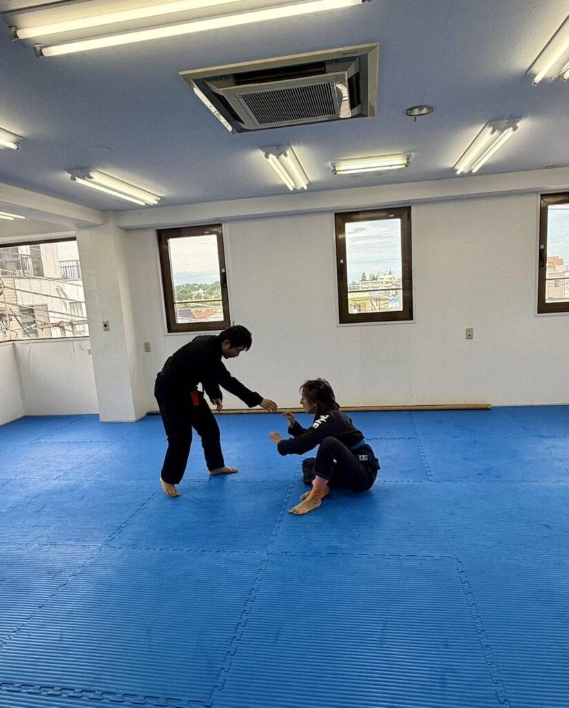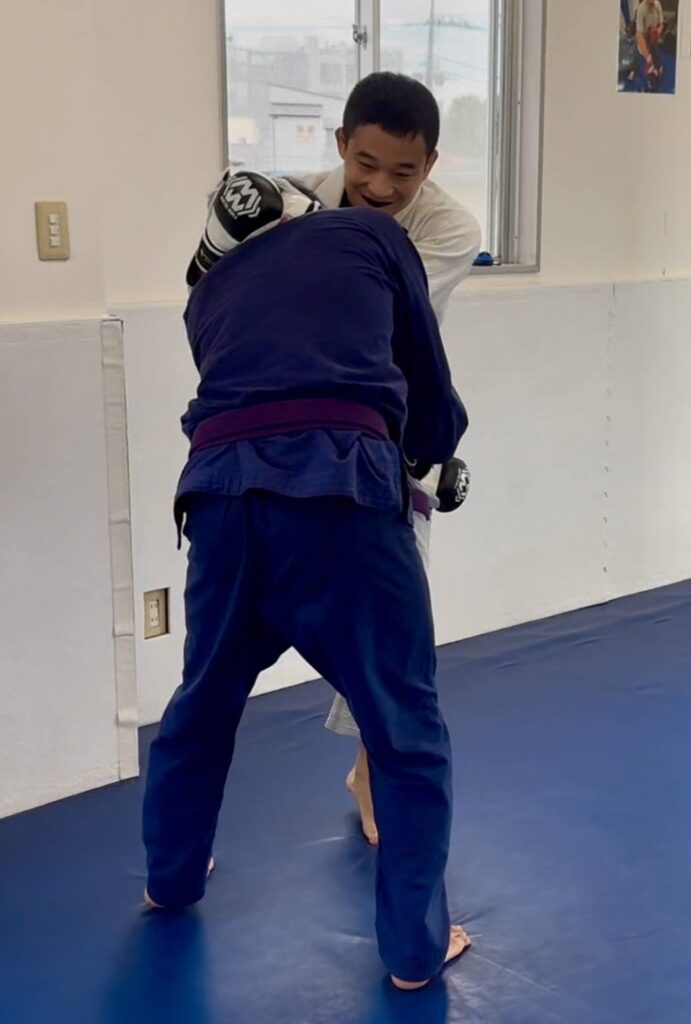 そんな、片岡さんは、クラスのスパー、フリースパーだけではモノ足りず、優しい横山さんにMMAをねだっていました。