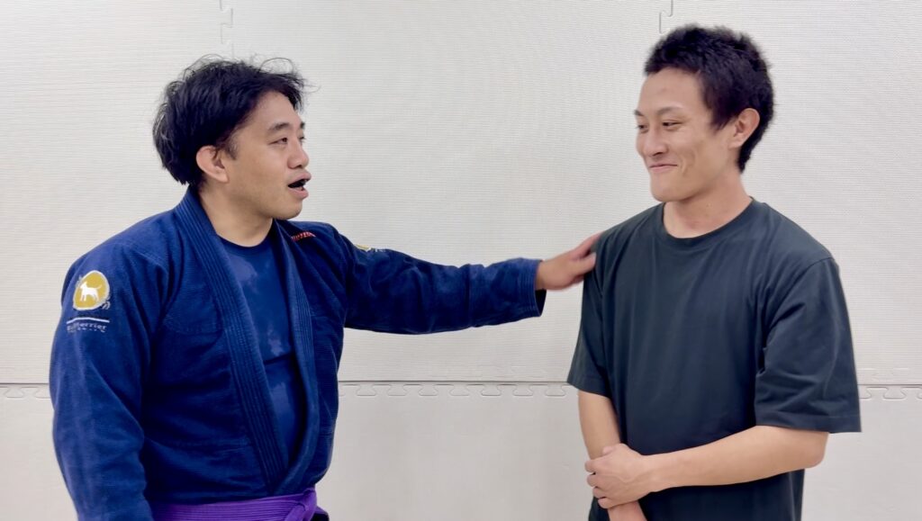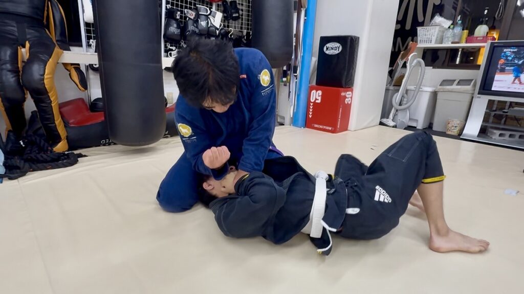 柔術1クラス目では、ベースボールチョークの練習を行いました。