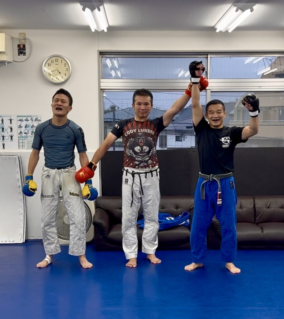 その対策練習として、片岡さん、佐藤くん、横山先生とMMAスパーリングをさせていただきました。