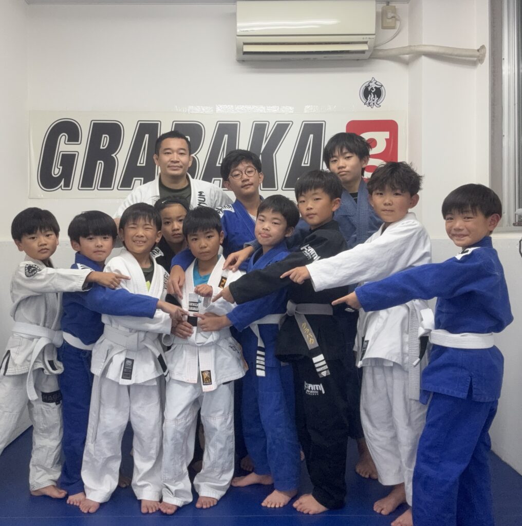 ミナト君にストライプ。 2025年10月17日(金)のグラバカ東村山ジム。 キッズクラス後にジム内試合で活躍したミナト君にストライプを巻きました。 ミナト君。ストライプおめでとう。 宍戸さん。ジュースの差し入れありがとうございました。 2025/10/18