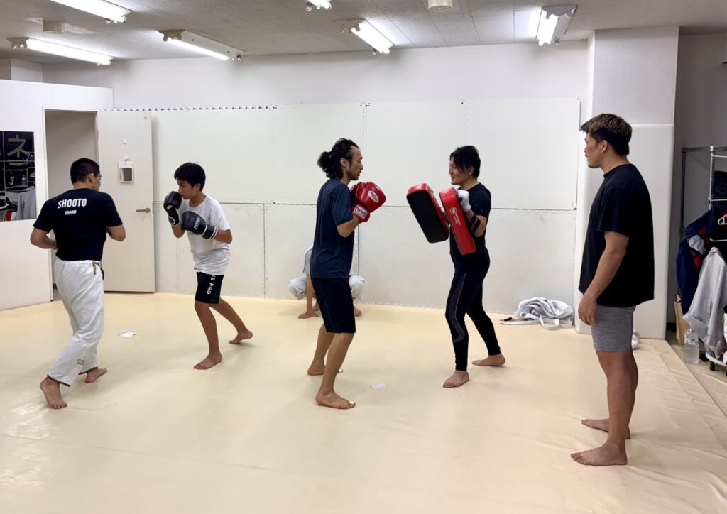 複雑なコンビネーションのミット打ちを練習されていました。ミット打ちは打つ方も受ける方も大変です。