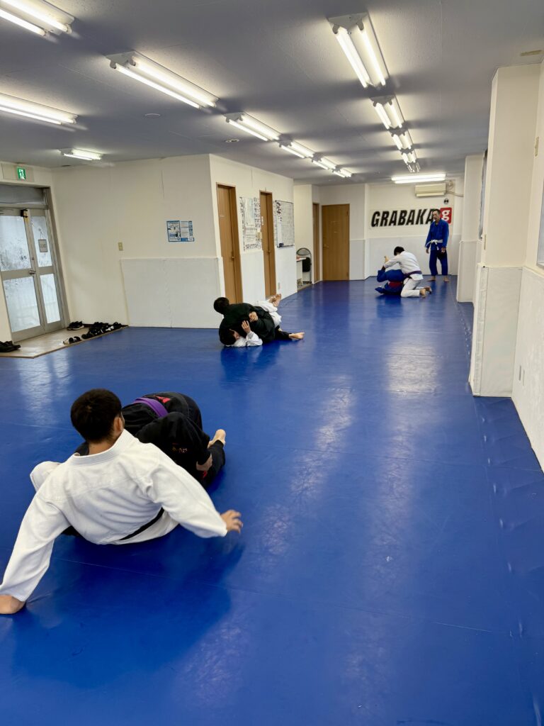 1クラス目は、ガードリテンションの打ち込み、デラヒーバからの肩襟肩襟、オモプラッタ、オモプラッタからの四角→三角絞め。
