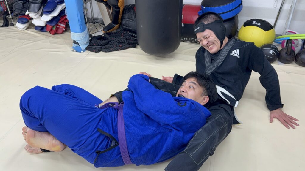 小林さんお得意のディープハーフからのウナギロックを極められ、膝が泣きそうです。