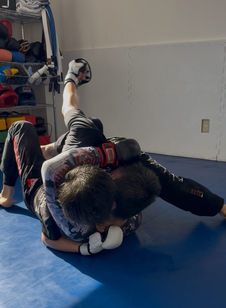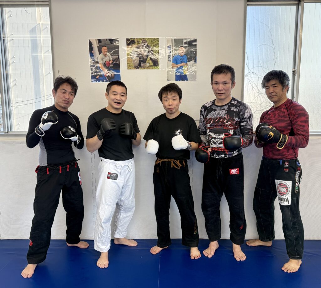 柔術クラス後は黒帯2人、紫帯1人、青帯2人で MMA練。