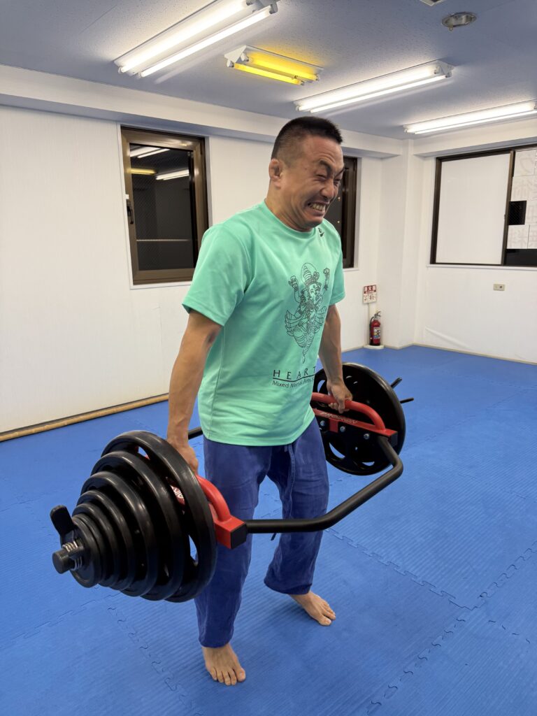 デッドリフトで何故かジャンプする西川コーチ。