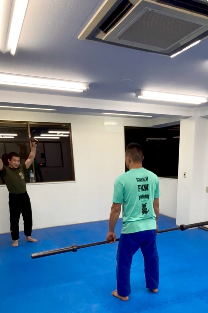 フリータイムは皆んなでウェイトリフティングの練習をしました。