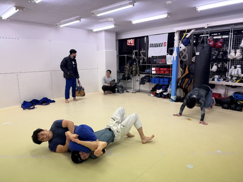 クラス後は、コバヤシさんとグラップリングスパー。