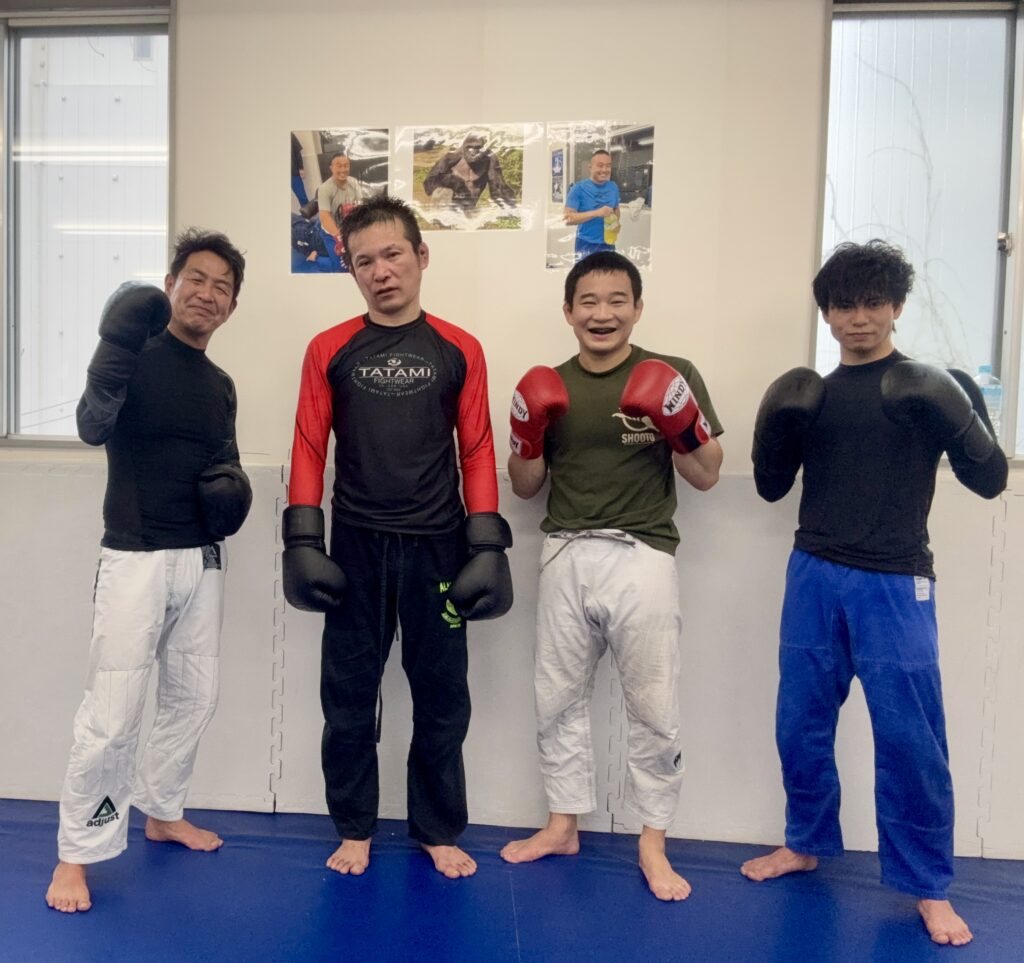 居残り練習はボクシンググローブを使用してMMAのポジションスパーリング。