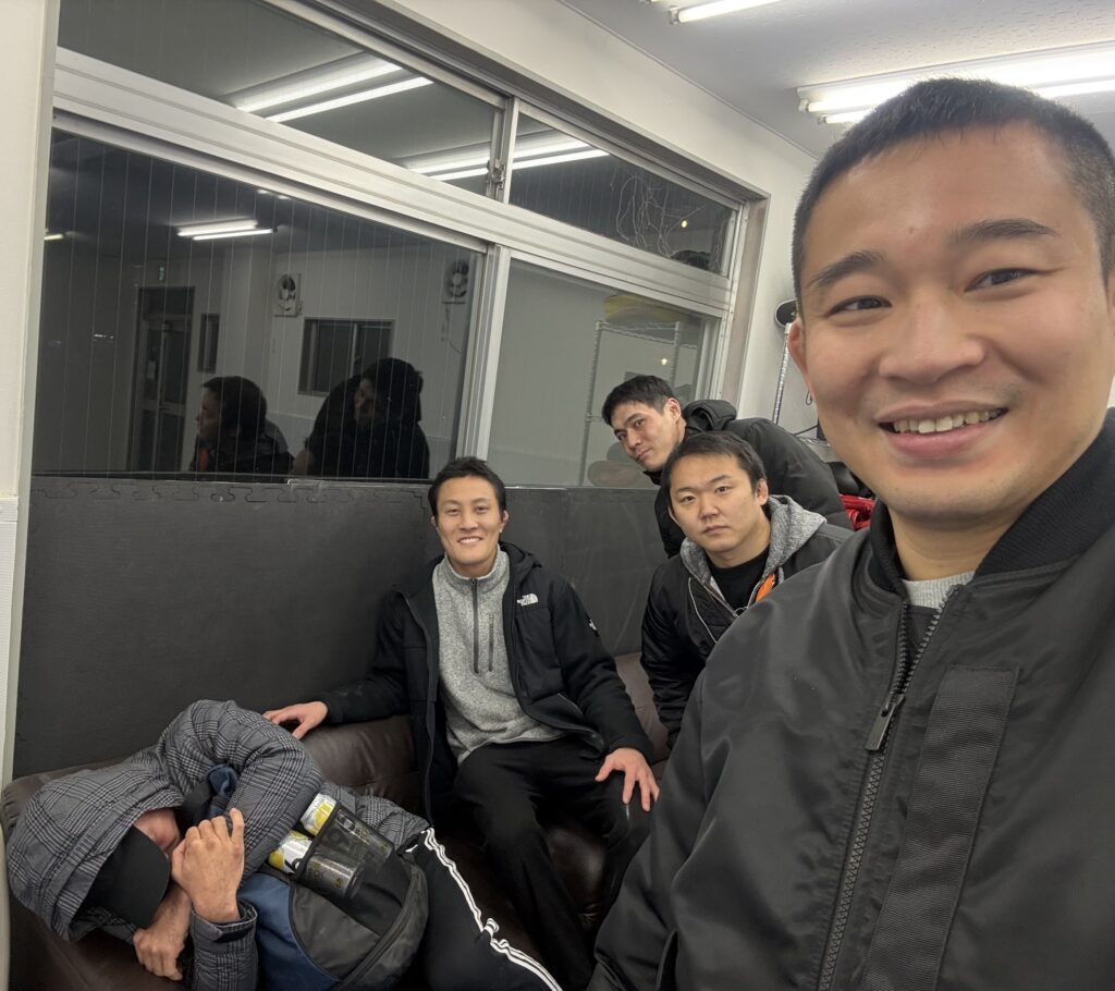 、、格闘技をやる場所で寝てしまった酒乱を囲んで記念撮影、、普通なら未体験の出来事で驚くとこなんですが、、前例🍑があるんですよね。。