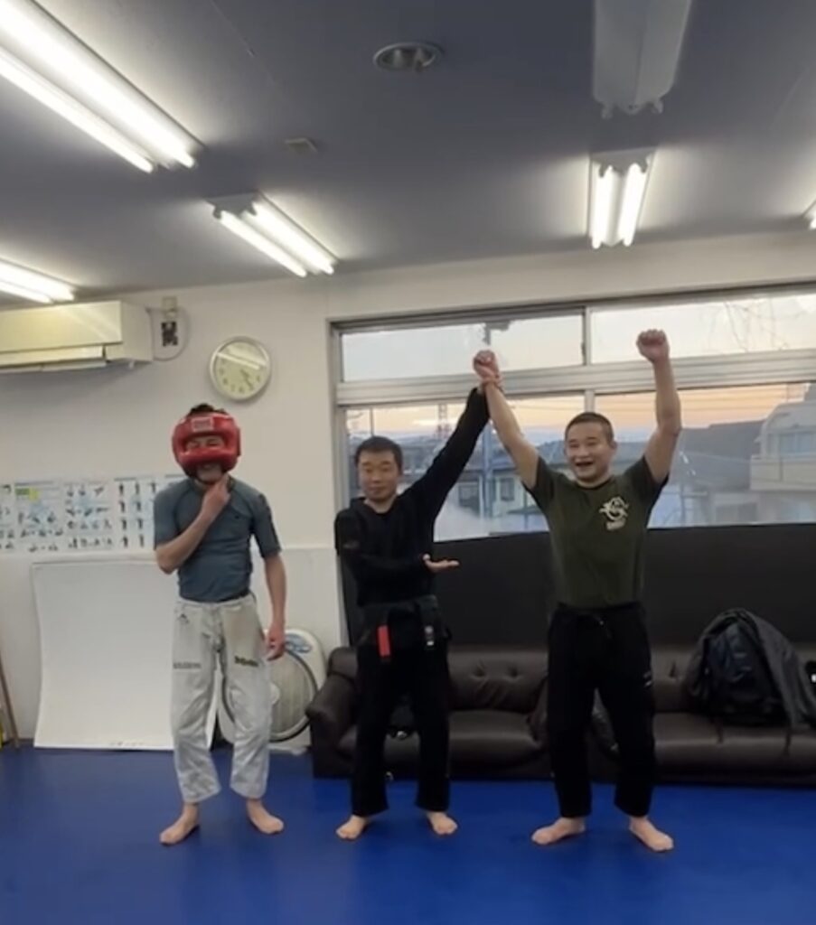 先生戦、、グラップリングで3本先取したほうの勝ちです。