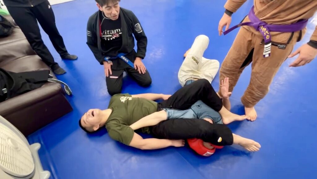 崩しからのウィリアムスガード、そこからの三角絞め、オモプラッタ。