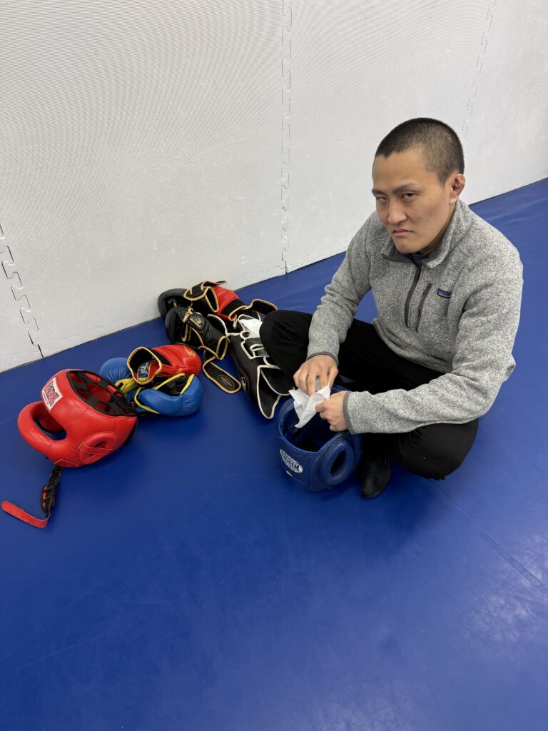 菊池先輩も巻き込み、MMAスパーリングを行いました。