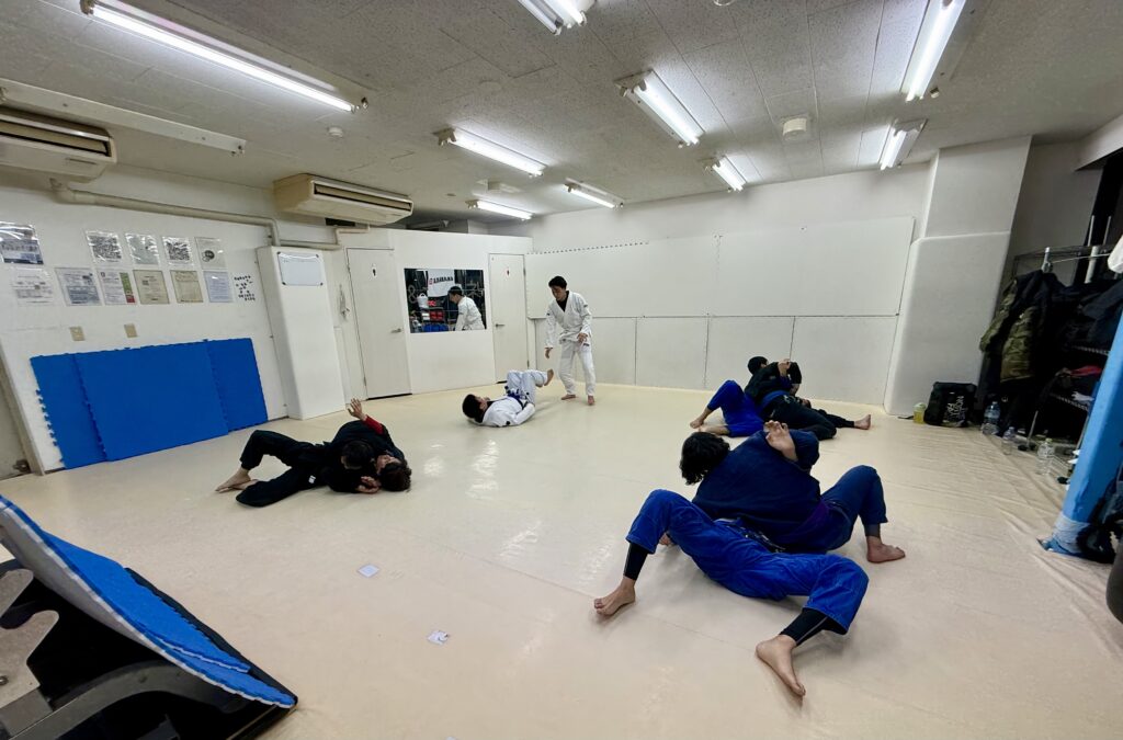 1クラス目はニースライス、2クラス目は大上君のリクエストで引き込み〜デラヒーバX〜ベリンボロからバックテイクの流れを3種類練習しました。