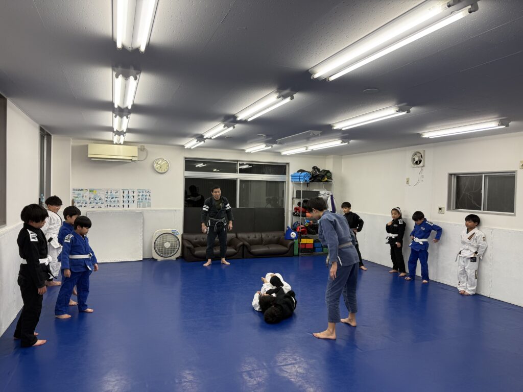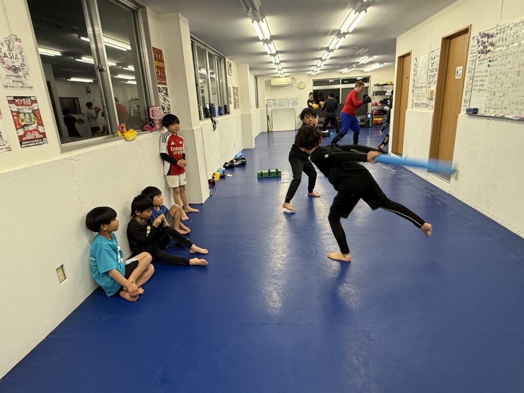 終盤のスパーリングの時間はキッズ達は希望でチャンバラ。