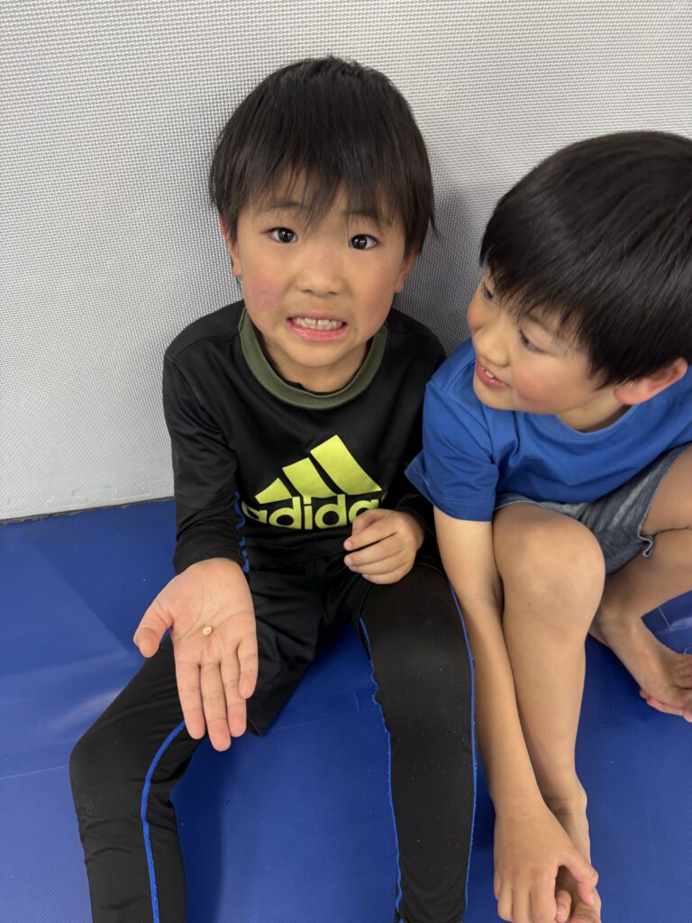 クラス中に歯が抜けたガク君。