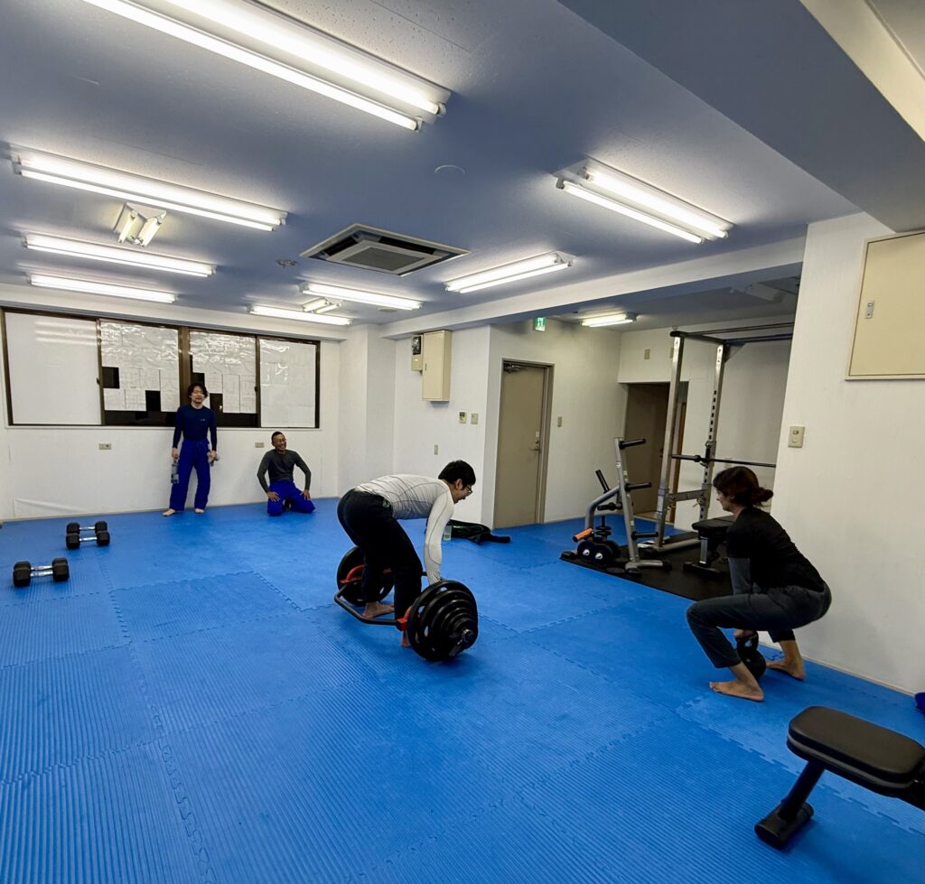 柔術クラスの後は、皆んなで安心して人間向きの筋肉トレーニング。