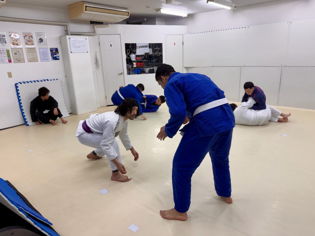 柔術クラス1クラス目のスパーリング。
