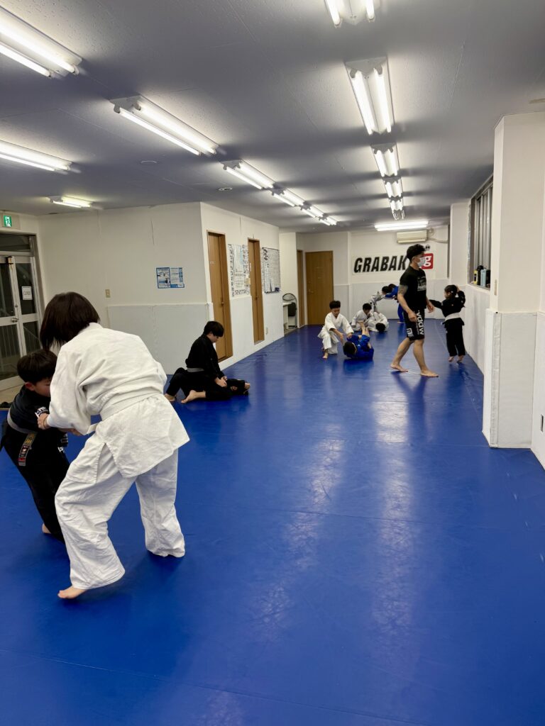 キッズクラス、キックボクシングクラス、柔術ビギナークラス、柔術レギュラークラス、柔術スパーリングとグラップリングスパーリング。
