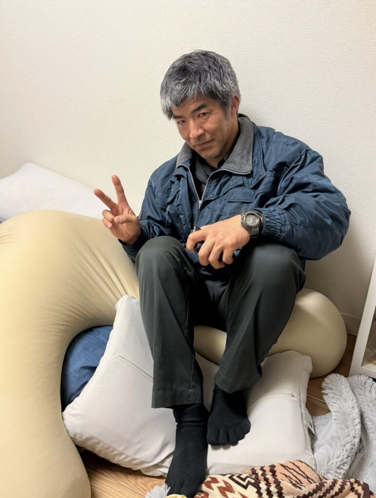 スパー後は、入賞祝いでブランデーを飲むヨシタカさん。