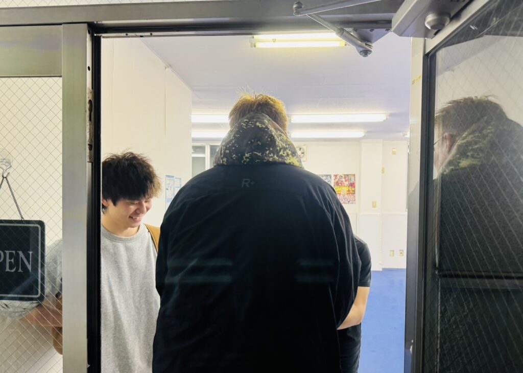 例によって閉館後突如ほろ酔いで現れる皆んな大好きエリックさん。デカい。
