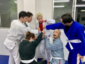 柔術クラス前の棒の稽古から始まって。パンクラス柔術王者対決で中村君にベルトチョークを食らったり、某柔術黒帯に優しくスパーリングしてもらったり、HIITを半泣きで叫びながらこなしていました。