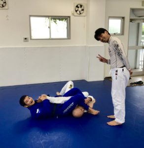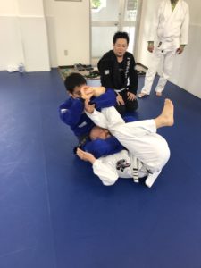 柔術ビギナークラスはラッソーガードからの三角絞めとオモプラータ。