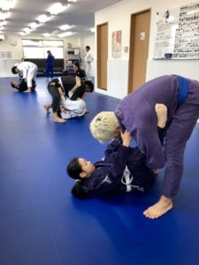 柔術レギュラークラスはバックポジションからの絞め技と後ろ三角絞めを練習しました。