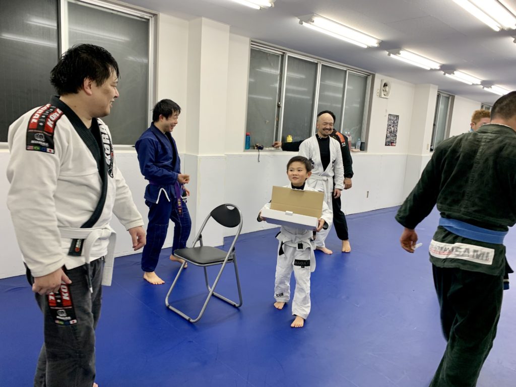 お父さんと一緒にハル君が年末年始練に参加して大人達に混ざって頑張ってスパーリングしていました。