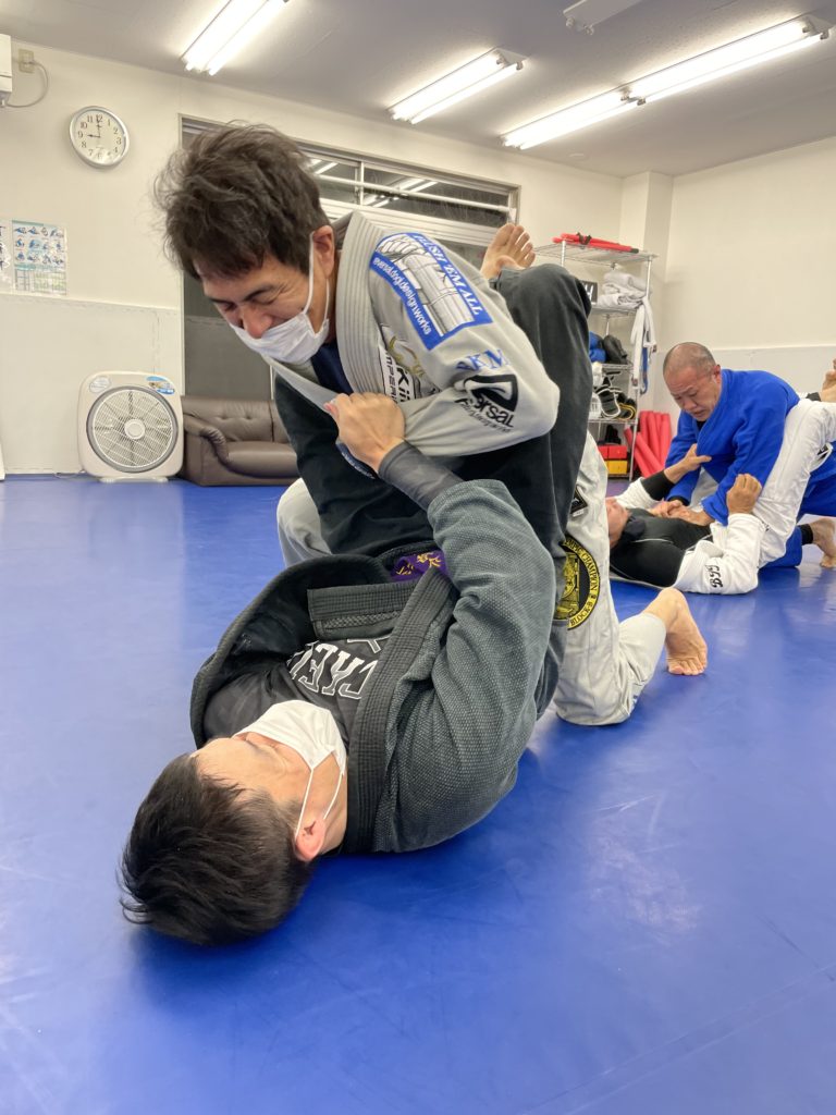 柔術レギュラークラスのスパーリングではカイザーの対戦相手だけグローブを🥊装着して打撃有りの状態で、カイザーは頑張って捌く練習をしました。